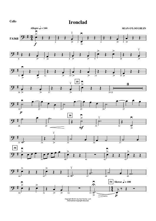 "Ironclad - Cello" Sheet Music by Sean O'Loughlin