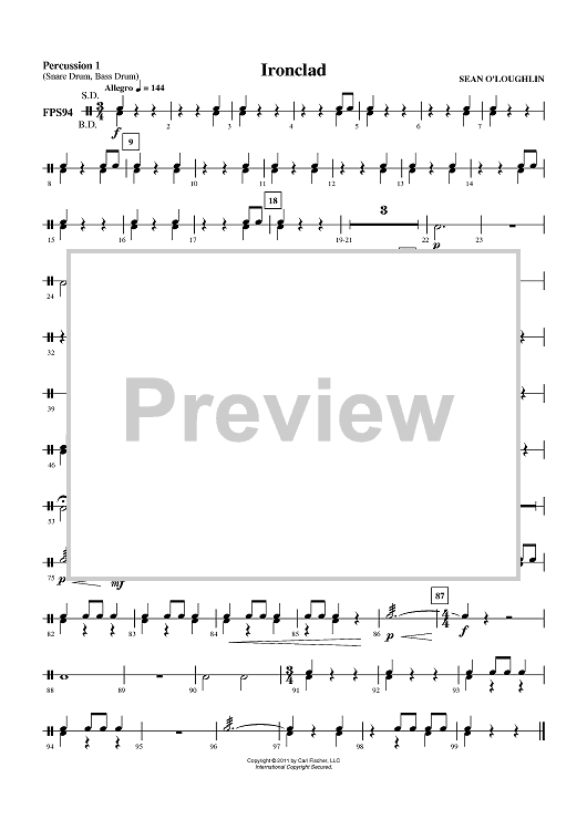 Digital Sheet Music for Ironclad - Percussion 1 by Sean O'Loughlin scored for Concert Band; id:420523