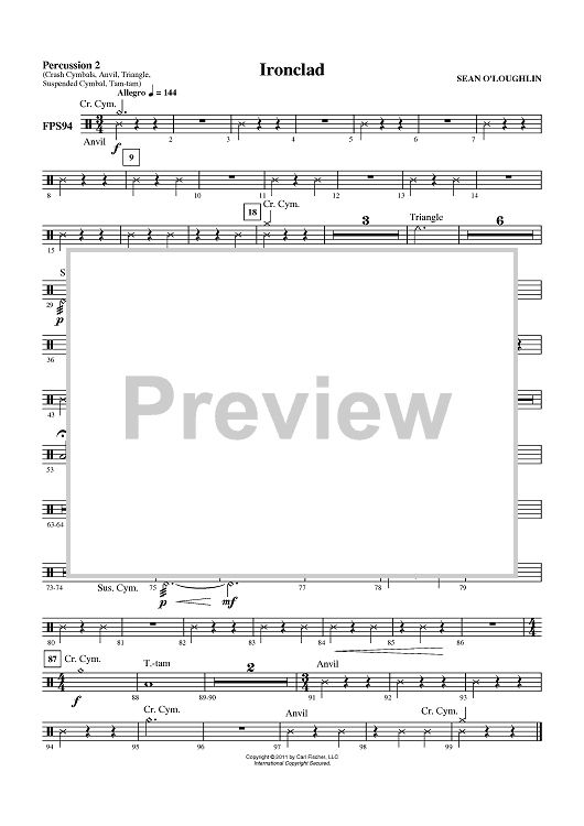 Digital Sheet Music for Ironclad - Percussion 2 by Sean O'Loughlin scored for Concert Band; id:420524