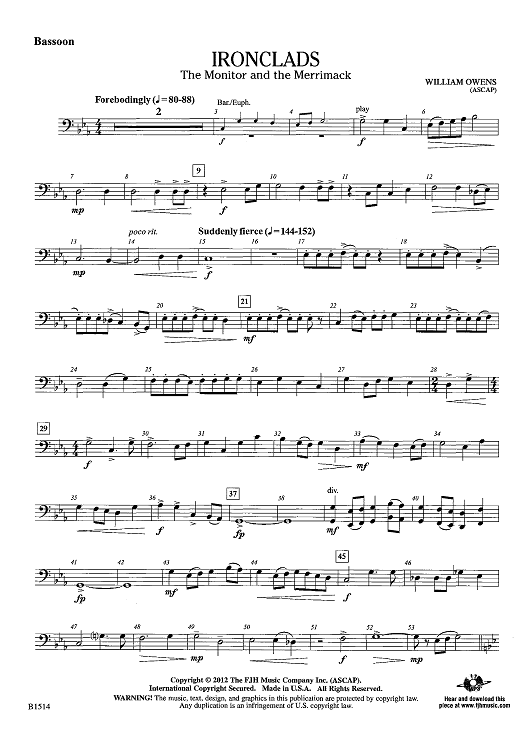 "Ironclads (The Monitor and the Merrimack) - Bassoon" Sheet Music by William Owens