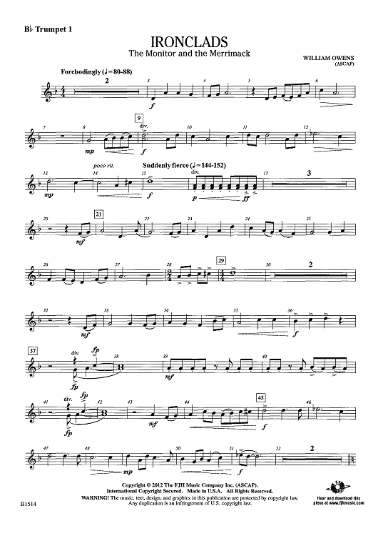 "Ironclads (The Monitor and the Merrimack) - Bb Trumpet 1" Sheet Music by William Owens