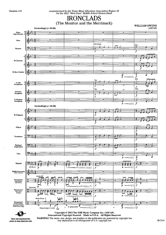Digital Sheet Music for Ironclads (The Monitor and the Merrimack) - Score by William Owens scored for Concert Band; id:439815
