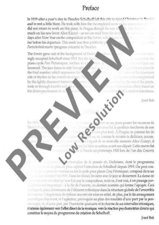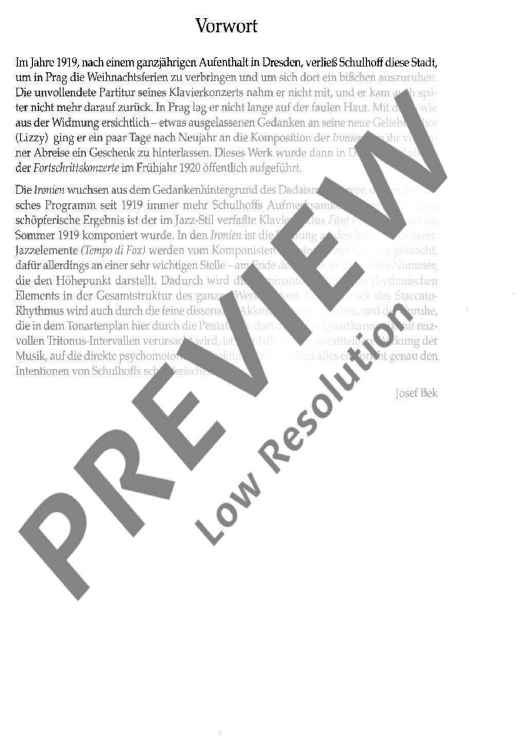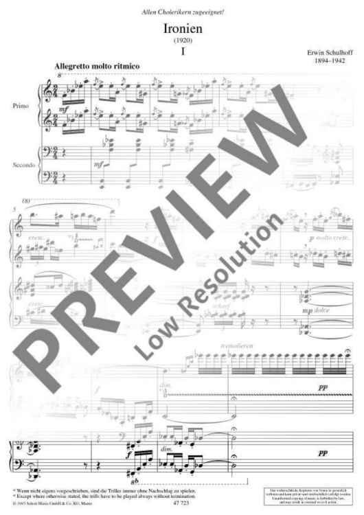 Digital Sheet Music for Ironien by Erwin Schulhoff scored for Piano (4 Hands); id:473935