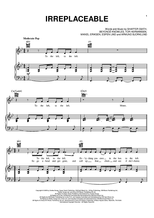 "Irreplaceable" Sheet Music by Beyonce