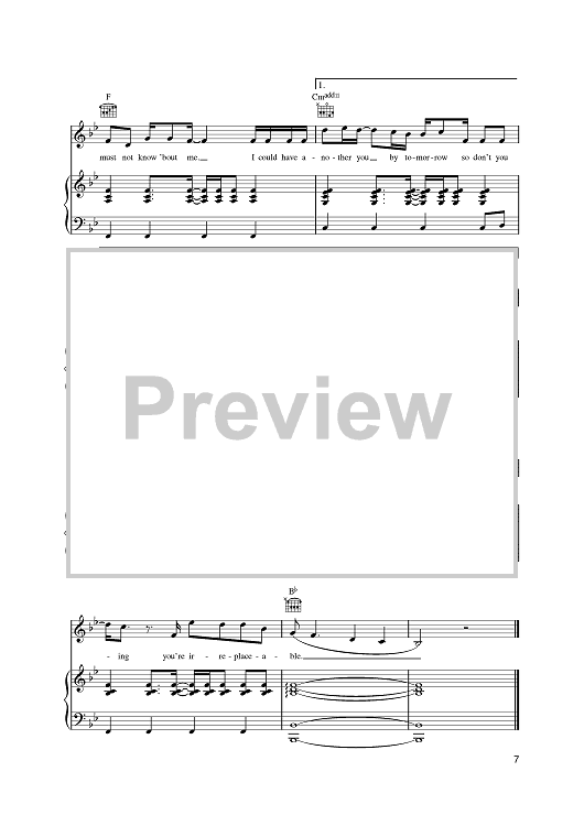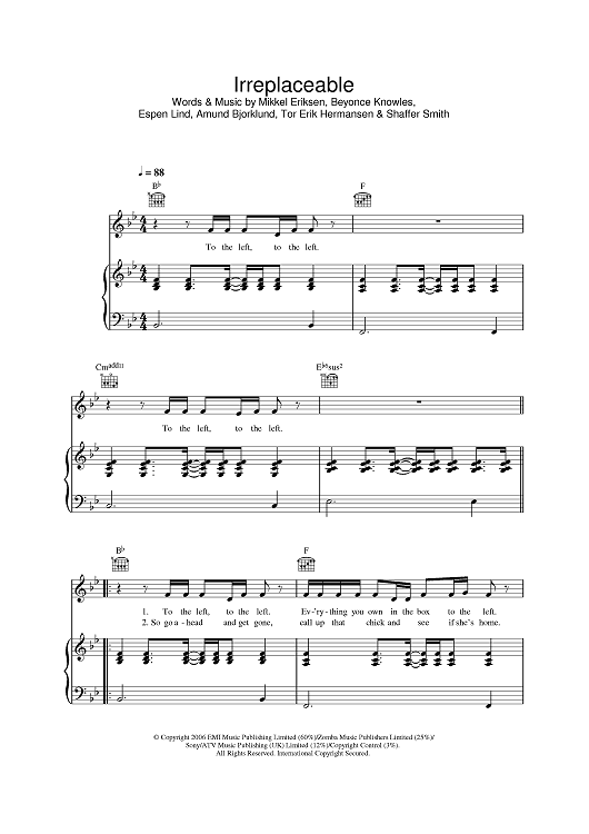 Digital Sheet Music for Irreplaceable by Beyonce, Tor Erik Hermansen, Ne-Yo, Amund Bjorklund, Espen Lind, Mikkel Eriksen scored for Piano/Vocal/Chords; id:397115