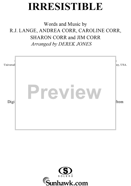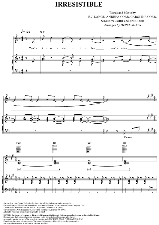 Digital Sheet Music for Irresistible by The Corrs, Derek Jones, Robert Lange, Sharon Corr, Caroline Corr, Andrea Corr, Jim Corr scored for Piano/Vocal/Chords; id:287325