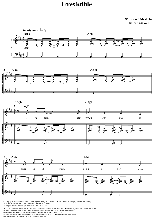 "Irresistible" Sheet Music by Darlene Zschech