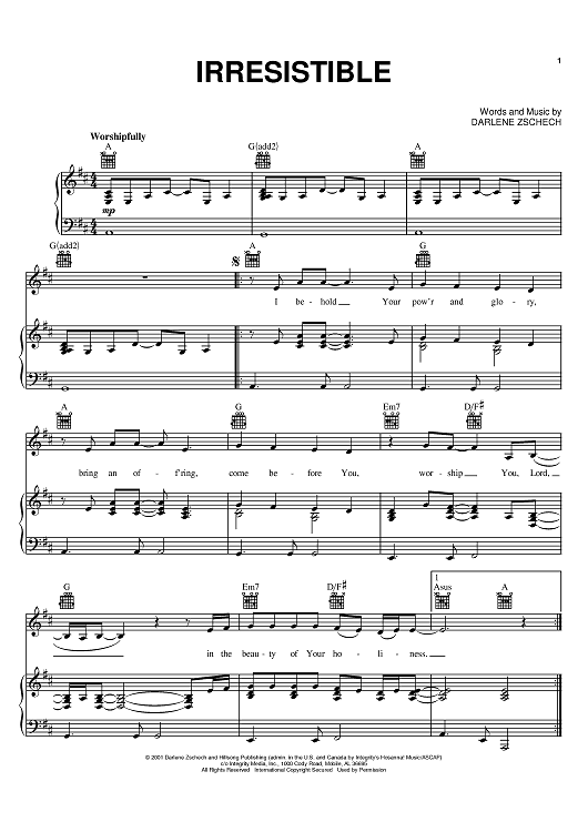 Digital Sheet Music for Irresistible by Darlene Zschech scored for Piano/Vocal/Chords; id:384288