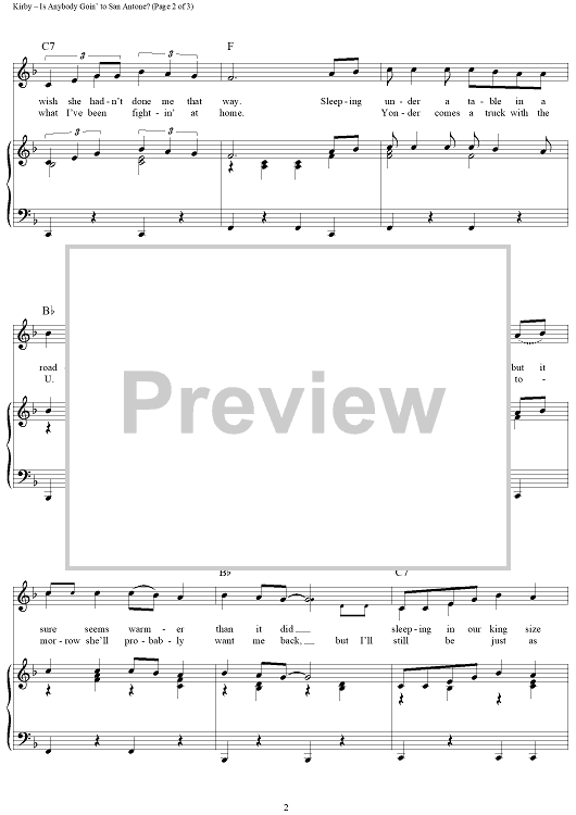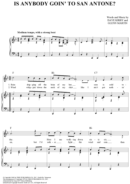 Digital Sheet Music for Is Anybody Goin' to San Antone? by Dave Kirby, Charley Pride, Glenn Martin scored for Piano/Vocal/Chords; id:362761