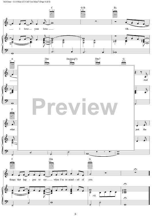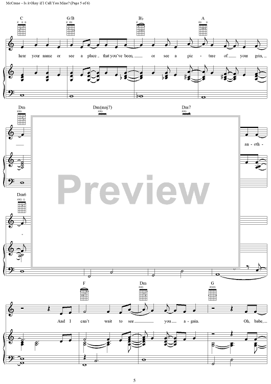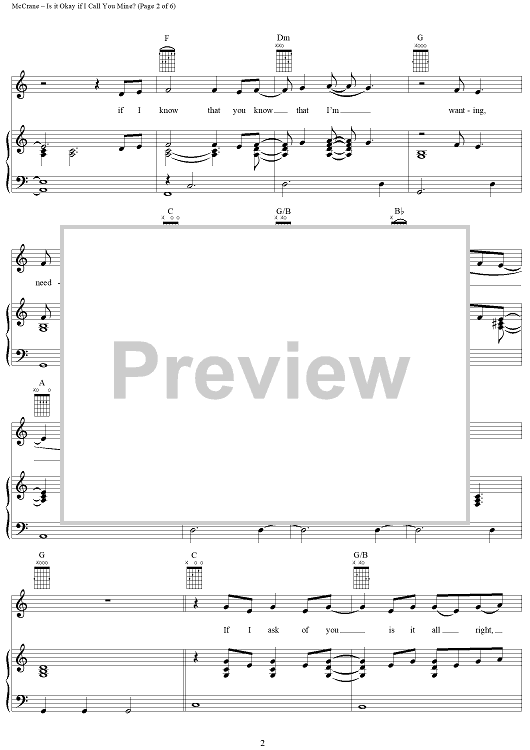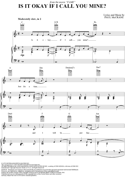Digital Sheet Music for Is it Okay if I Call You Mine? by Paul McCrane scored for Piano/Vocal/Chords; id:204483