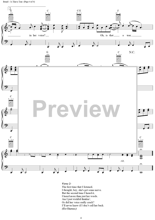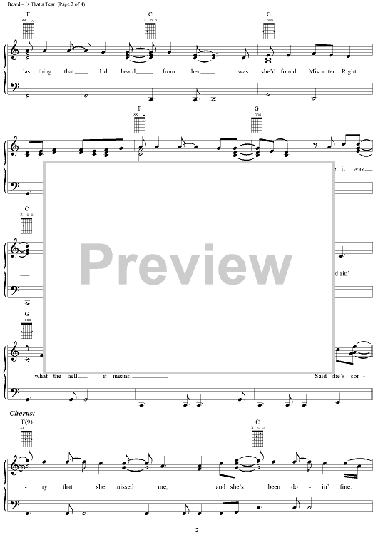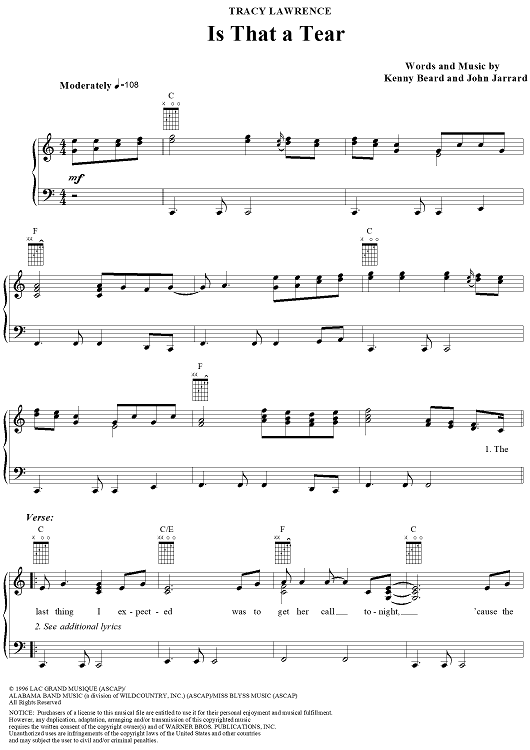 Digital Sheet Music for Is That A Tear by Tracy Lawrence, John Jarrard, Kenny Beard scored for Piano/Vocal/Chords; id:110643