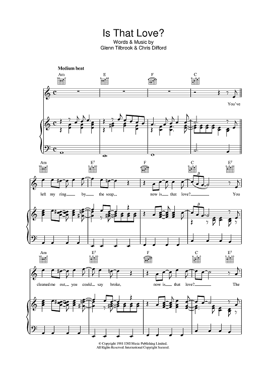 Digital Sheet Music for Is That Love by Chris Difford, Squeeze, Glenn Tilbrook scored for Piano/Vocal/Chords; id:402324