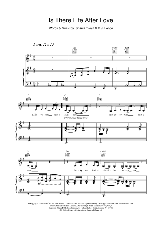 Digital Sheet Music for Is There Life After Love by Shania Twain scored for Piano/Vocal/Chords; id:377070