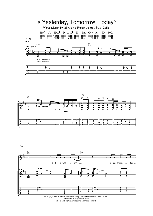 Digital Sheet Music for Is Yesterday, Tomorrow, Today? by Stuart Cable, Kelly Jones, Richard Jones, Stereophonics scored for Guitar Tab; id:393501