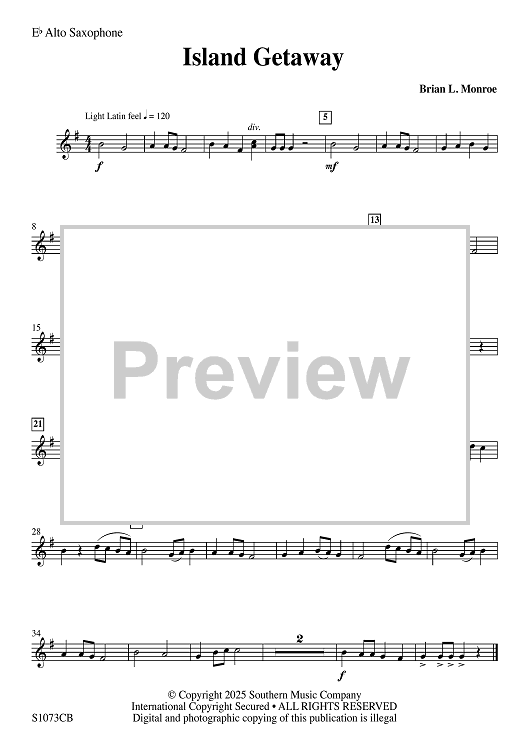 "Island Getaway - Eb Alto Saxophone" Sheet Music by Brian Monroe