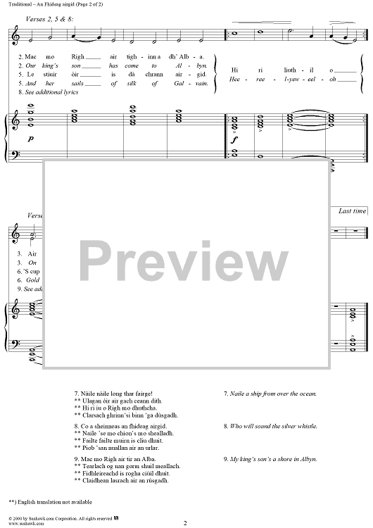 Digital Sheet Music for Island Jacobite Song-The Silver Whistle, An Fhideag airgid by Marjory Kennedy-Fraser, Traditional scored for Piano/Vocal; id:260242