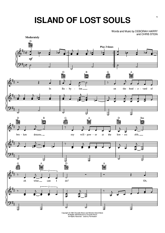 Digital Sheet Music for Island Of Lost Souls by Blondie, Deborah Harry, Chris Stein scored for Piano/Vocal/Chords; id:380398