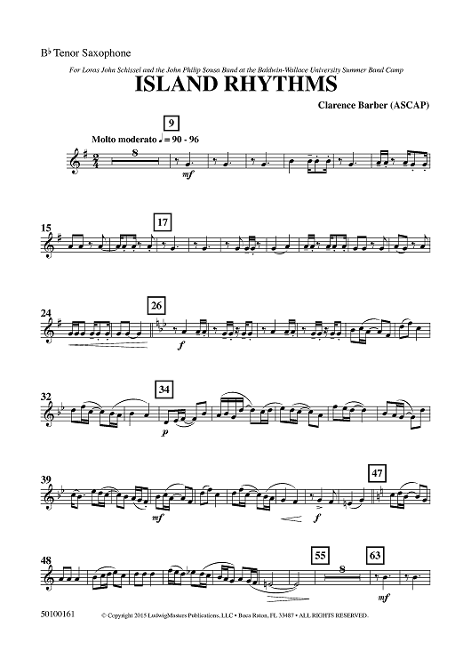 "Island Rhythms - Bb Tenor Sax" Sheet Music by Clarence Barber