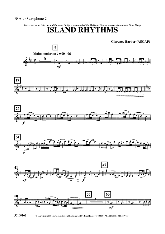 "Island Rhythms - Eb Alto Sax 2" Sheet Music by Clarence Barber