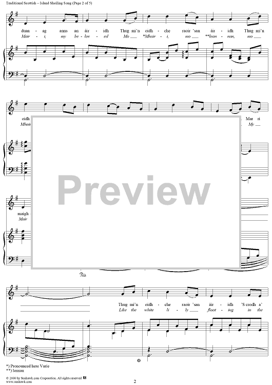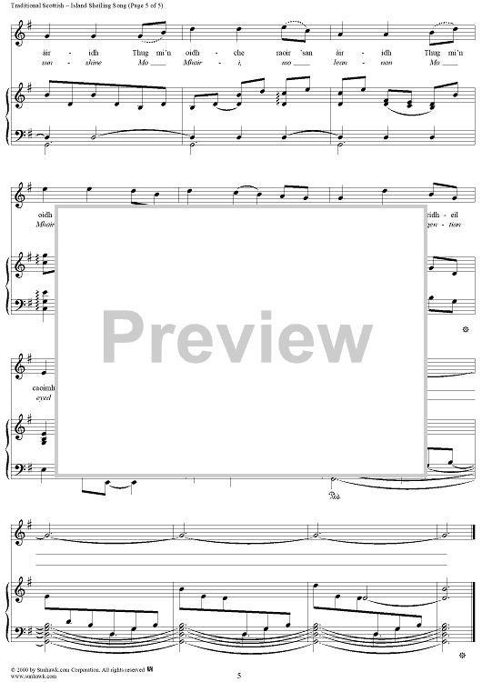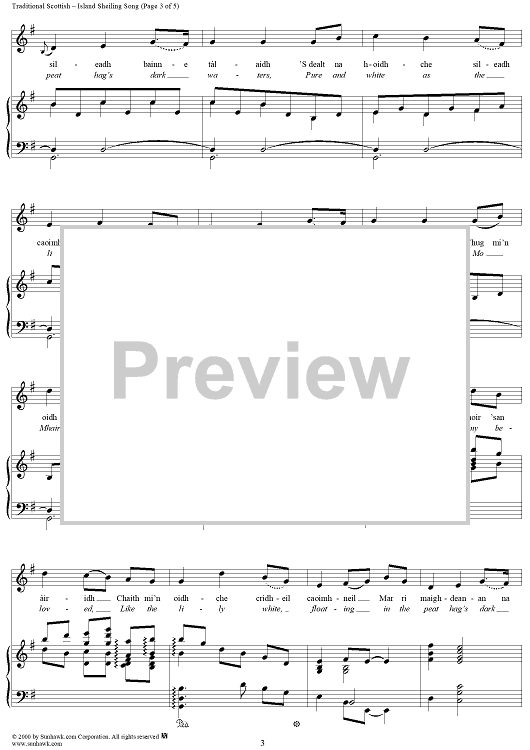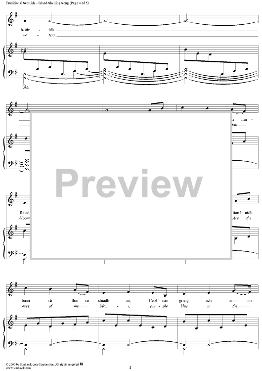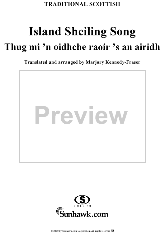 Digital Sheet Music for Island Sheiling Song by Marjory Kennedy-Fraser, Traditional scored for Piano/Vocal; id:235391