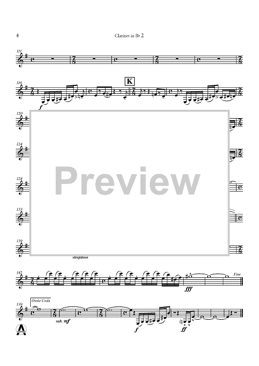 Digital Sheet Music for Islero - Clarinet 2 by Kenneth Amis scored for Chamber winds with Timpani; id:404134