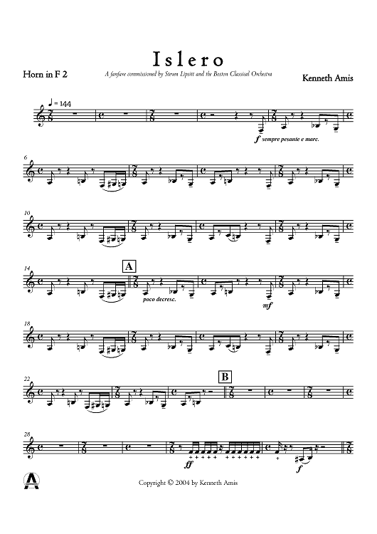 "Islero - Horn 2" Sheet Music by Kenneth Amis