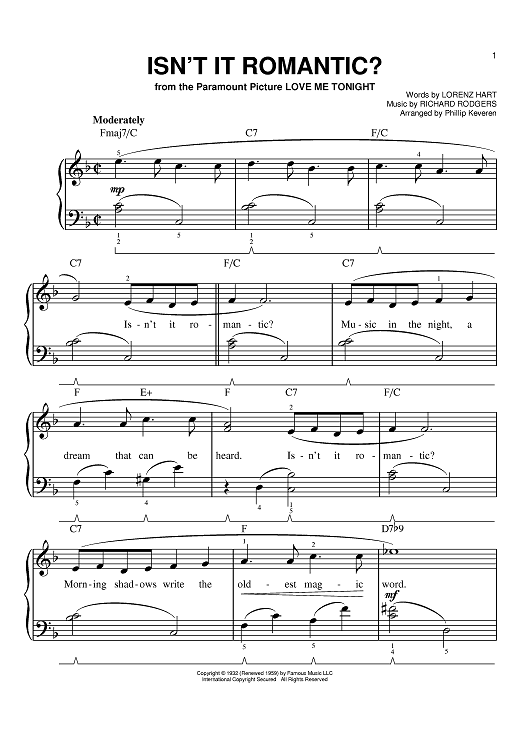 "Isn't It Romantic?" Sheet Music by Richard Rodgers