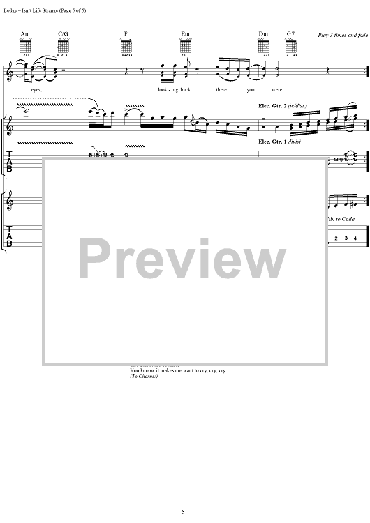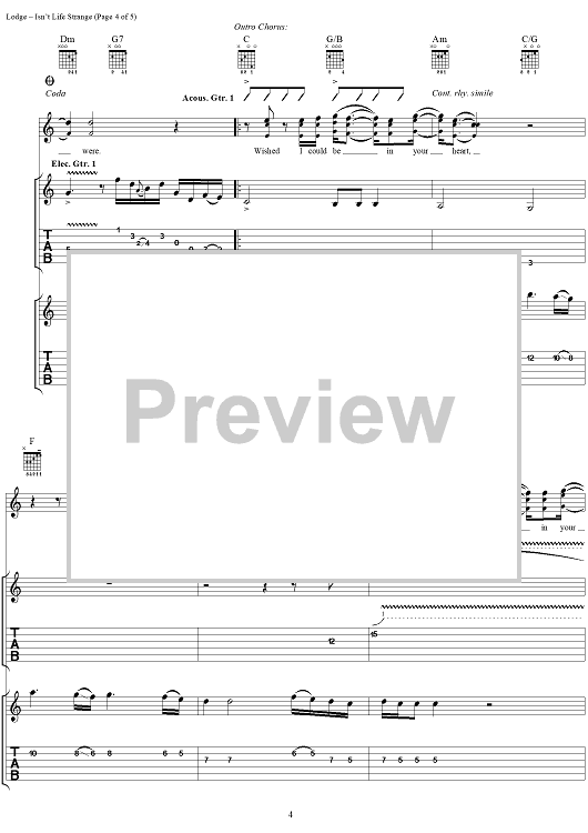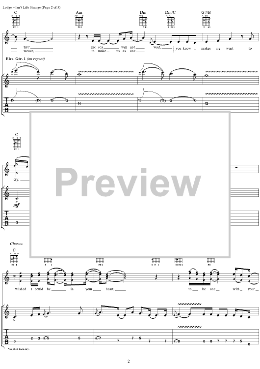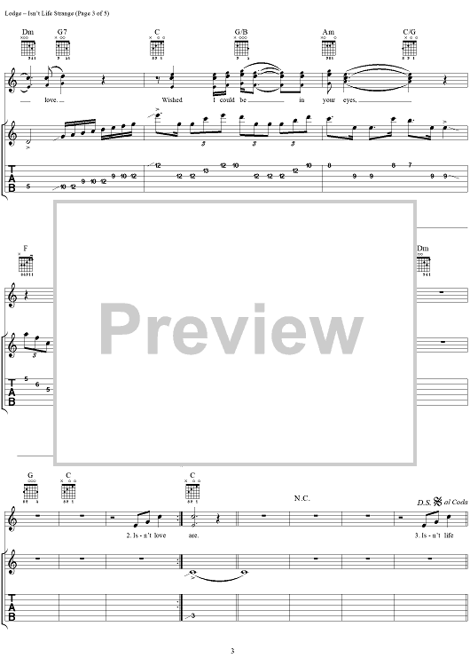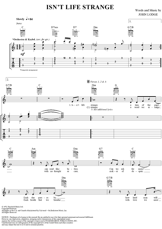 Digital Sheet Music for Isn't Life Strange by John Lodge, Moody Blues scored for Guitar Tab/Vocal; id:288373