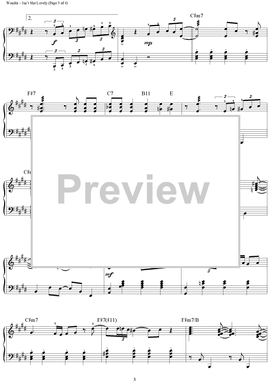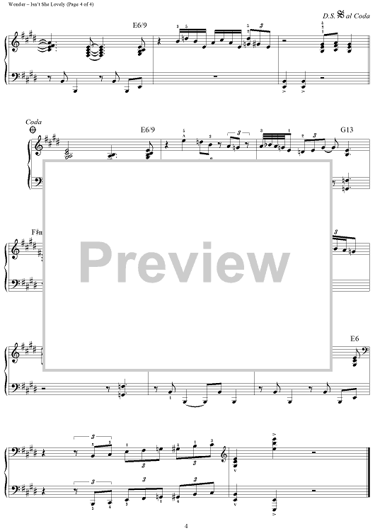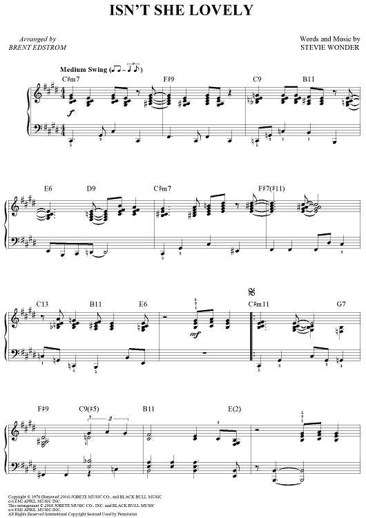 Digital Sheet Music for Isn't She Lovely by Stevie Wonder, Brent Edstrom scored for Piano Solo; id:460612