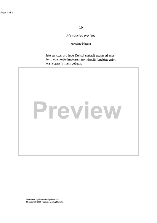 "Iste sanctus pro lege - Lyrics" Sheet Music by Agostino Masera