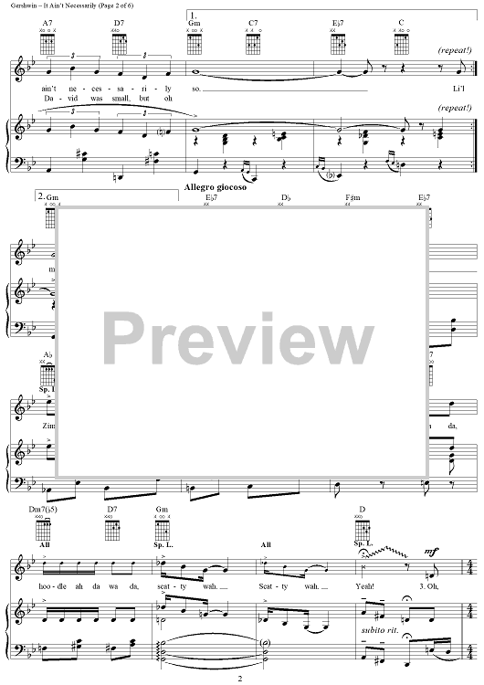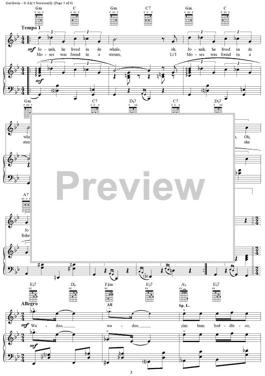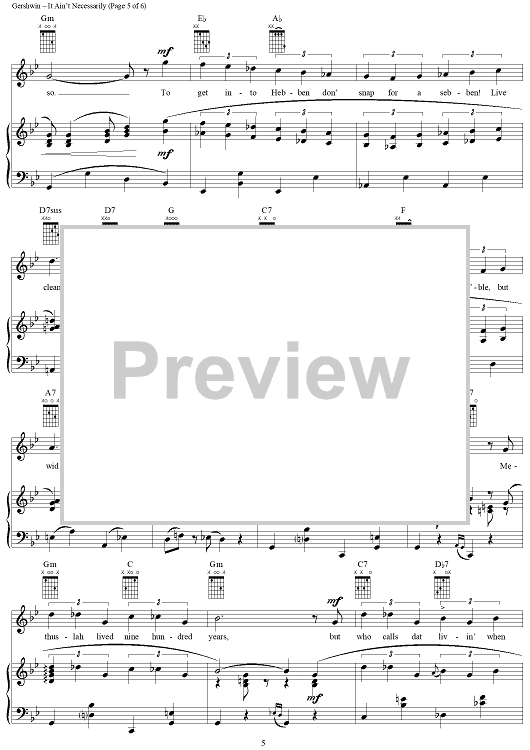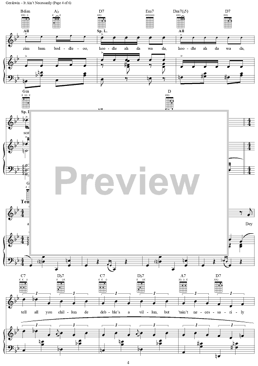 Digital Sheet Music for It Ain't Necessarily So by George Gershwin, Ira Gershwin, Dubose & Dorothy Heyward scored for Piano/Vocal/Chords; id:240523