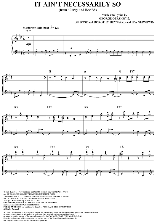 Digital Sheet Music for It Ain't Necessarily So by George Gershwin, Ira Gershwin, Marcus Roberts, Dubose & Dorothy Heyward scored for Piano Solo; id:309123