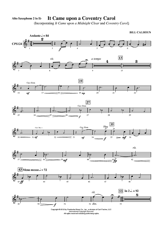 "It Came Upon A Coventry Carol - Alto Sax 2" Sheet Music by Bill Calhoun