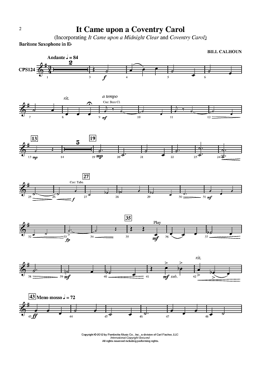 "It Came Upon A Coventry Carol - Baritone Sax" Sheet Music by Bill Calhoun