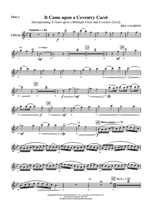 Digital Sheet Music for It Came Upon A Coventry Carol - Flute 2 by Bill Calhoun scored for Concert Band; id:430514