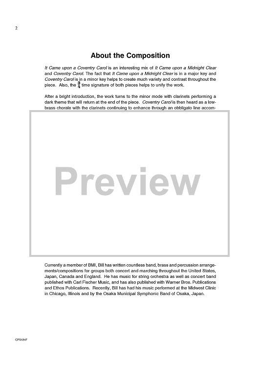 Digital Sheet Music for It Came Upon A Coventry Carol - Score by Bill Calhoun scored for Concert Band; id:430512