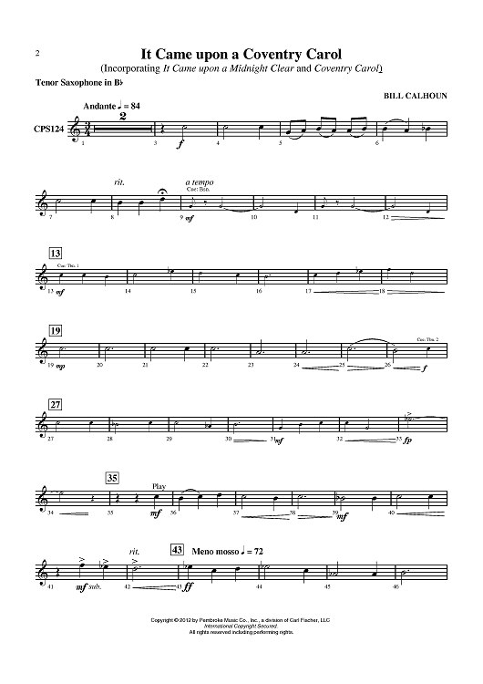 "It Came Upon A Coventry Carol - Tenor Sax" Sheet Music by Bill Calhoun