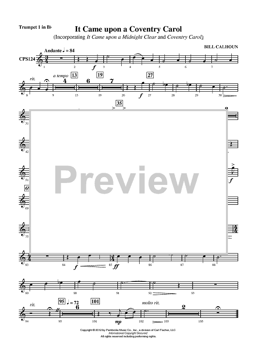 Digital Sheet Music for It Came Upon A Coventry Carol - Trumpet 1 in Bb by Bill Calhoun scored for Concert Band; id:430525