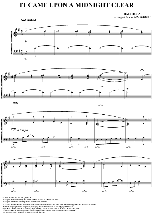 Digital Sheet Music for It Came Upon A Midnight Clear by Edmund Sears, Chris Lobdell, Richard Storrs Willis scored for Easy Piano; id:132892