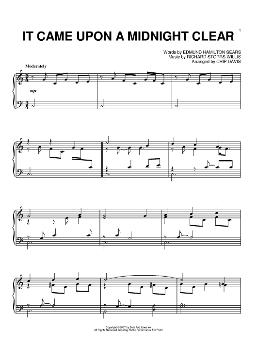 Digital Sheet Music for It Came Upon A Midnight Clear by Edmund Sears, Richard Storrs Willis, Chip Davis, Mannheim Steamroller scored for Piano; id:402715