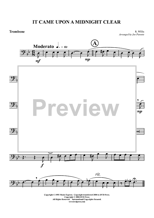 "It Came Upon a Midnight Clear - Trombone" Sheet Music by Traditional