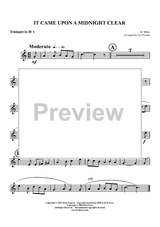 "It Came Upon a Midnight Clear - Trumpet 1 in Bb" Sheet Music by Traditional