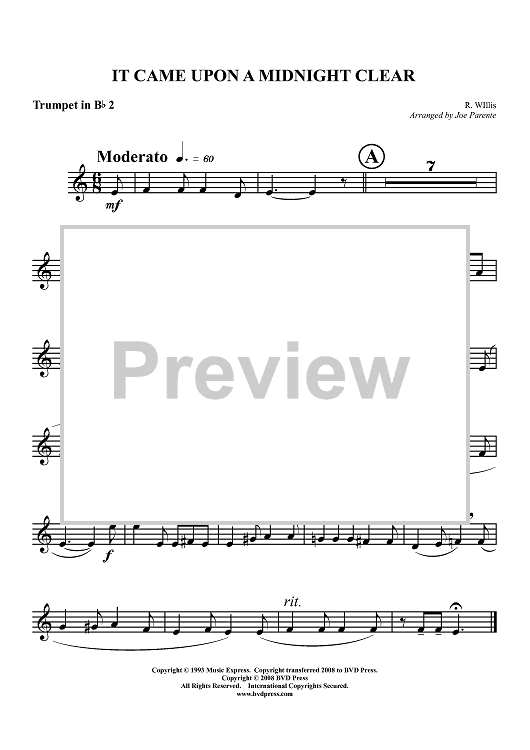 "It Came Upon a Midnight Clear - Trumpet 2 in Bb" Sheet Music by Traditional