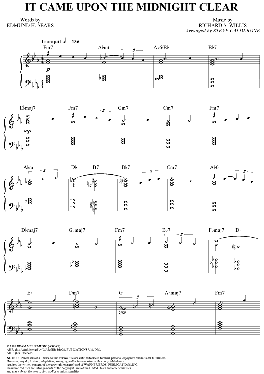 Digital Sheet Music for It Came Upon the Midnight Clear by Edmund Sears, Steve Calderone, Richard Storrs Willis scored for Piano Solo; id:262552