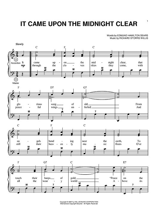 Digital Sheet Music for It Came Upon The Midnight Clear by Edmund Sears, Richard Storrs Willis scored for Accordion; id:397935