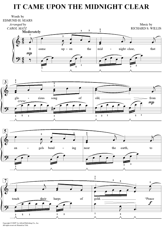 Digital Sheet Music for It Came Upon the Midnight Clear by Edmund Sears, Carol Matz, Richard Storrs Willis scored for Piano; id:453951