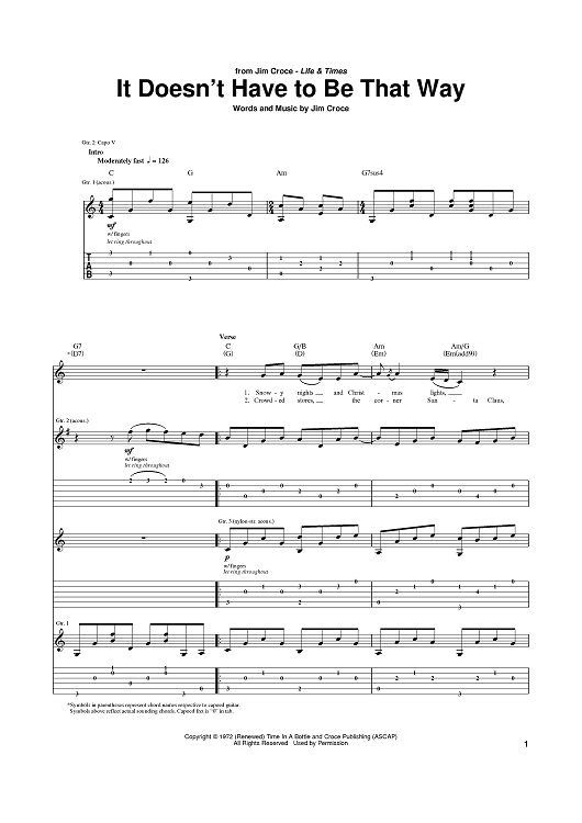 Digital Sheet Music for It Doesn't Have To Be That Way by Jim Croce scored for Guitar Tab; id:383554