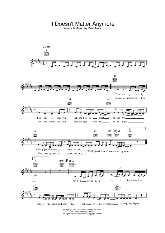 Digital Sheet Music for It Doesn't Matter Anymore by Eva Cassidy scored for Lead Sheet; id:376856
