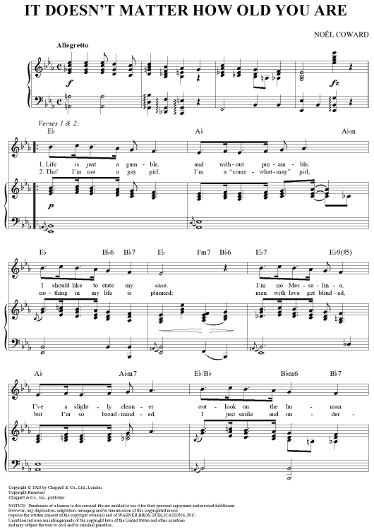 Digital Sheet Music for It Doesn't Matter How Old You Are by Noel Coward scored for Piano/Vocal/Chords; id:357021