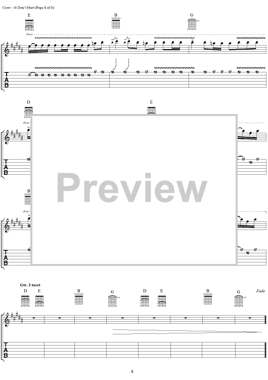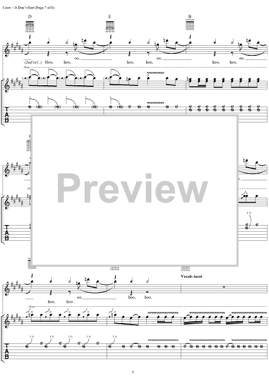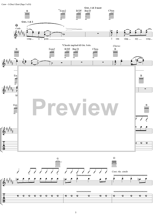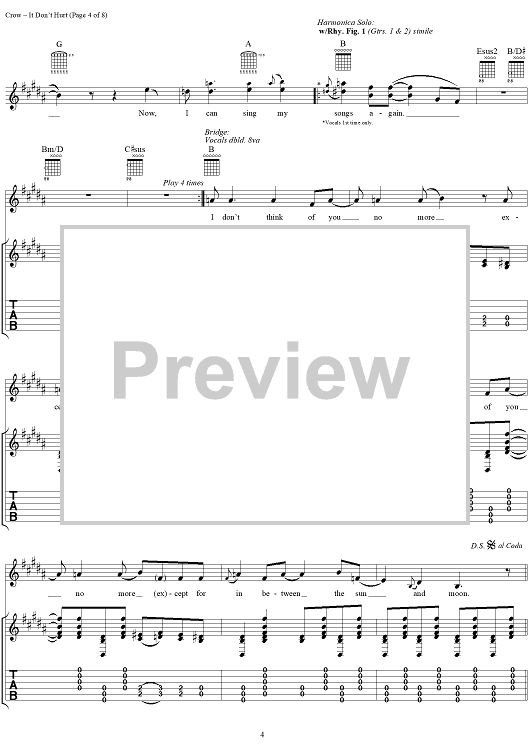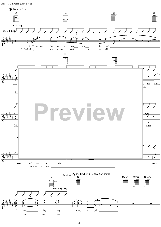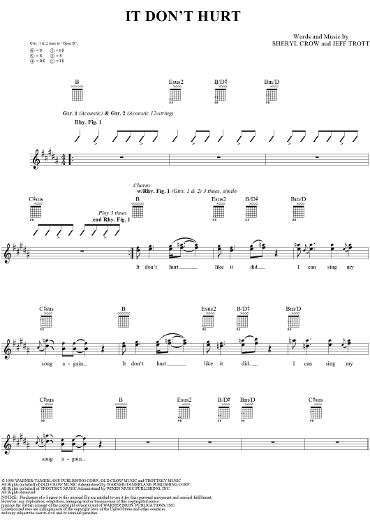 Digital Sheet Music for It Don't Hurt by Sheryl Crow, Jeff Trott scored for Guitar Tab/Vocal; id:118846